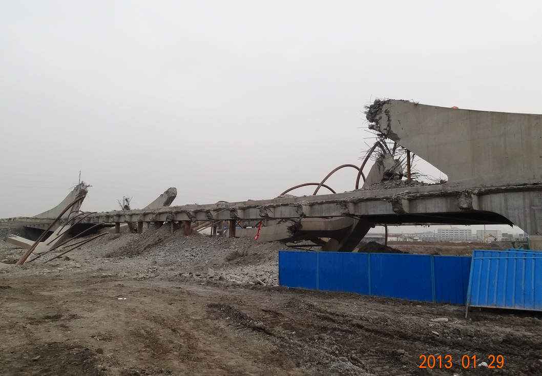 2012年12月底,由监理部组织专家对拆桥方案进行专家审查,确定采用拱肋及系杆临时支架并自上而下逐段拆除方案,经20多天的紧张准备工作下,监理工程师组织多次对支架搭设、反压等进行工序检查后同意主桥拆除。 2013年1月28日下午至1月29日上午,经安全环境检查后,施工队开始对拱肋中部采用凿岩机和液压剪进行分解,并从端部进行凿出,截止目前拱肋部分已按既定方案顺利拆除,拱肋分解后各段均按预估位置落下,至此历时将近一个月的大桥拱肋部分拆除工作全面告捷,为后期桥梁中下部结构拆除奠定了坚实的安全基础,亦为玖龙桥新建桥梁的工期提供了保障,玖龙桥下部结构将于春节后拆除。 玖龙桥新建桥梁全桥桩基300根,截止目前已完成钻孔灌注桩83根,已超额完成了既定1月底完成钻孔灌注桩71根的目标。