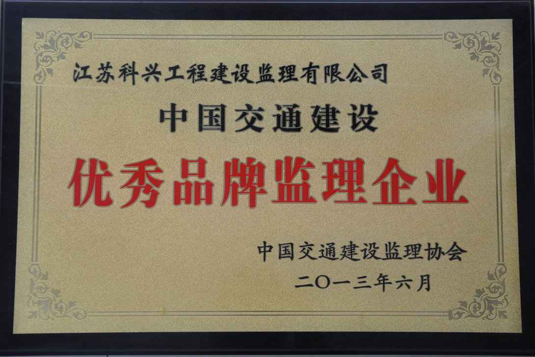 | 江苏乐动(中国)监理公司荣获中国交通建设优秀品牌监理企业称号 | |