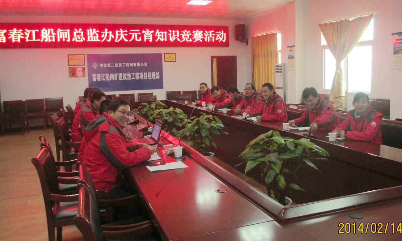 2014年2月14日下午2点,富春江船闸总监办举办了庆元宵知识竞赛活动。 首先主持人将活动议程和规则进行讲解,活动分为四组:综合办公室、港行组、试验组、测量组。竞赛内容分为:工程设计图纸、船闸施工评定标准规范、测量专业知识、试验专业知识、安全法律法规、监理理论、灯谜猜猜看等。此次活动对监理办人员的业务知识进行巩固和提高,开阔了生活常识。 最后高总宣贯了2013年公司年度总结大会相关内容和监理行业发展趋势,要求各专业认真钻研业务知识,在2014年的监理工作中再接再厉,顺利完成富春江船闸监理工作。(黄建廷)