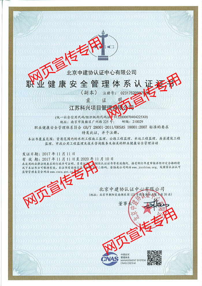 当前位置:首页 > 资质资信 > 职业健康安全管理体系认证证书