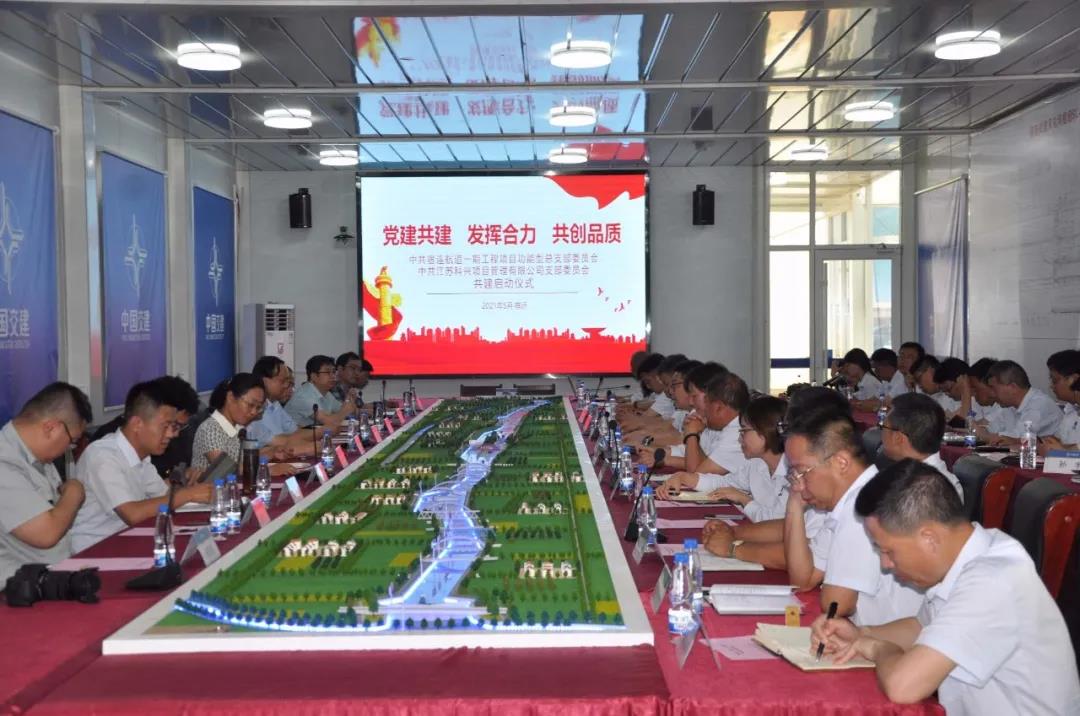 为深入贯彻习近平新时代中国特色社会主义思想和党的十九大精神,扎实开展党史教育,创新“党建共建+”模式,有效发挥党组织的领导核心作用和党员的先锋模范作用,切实提升宿连航道整治工程一期工程的项目管理水平,2021年5月31日,乐动(中国)公司党支部联合宿连航道一期工程项目功能型党总支开展党组织结对共建活动。宿迁市交通运输局党委委员、副局长邵岩,宿迁市港航事业发展中心党总支书记、主任姜若松,乐动(中国)公司党支部书记、总经理徐志峰出席本次活动。