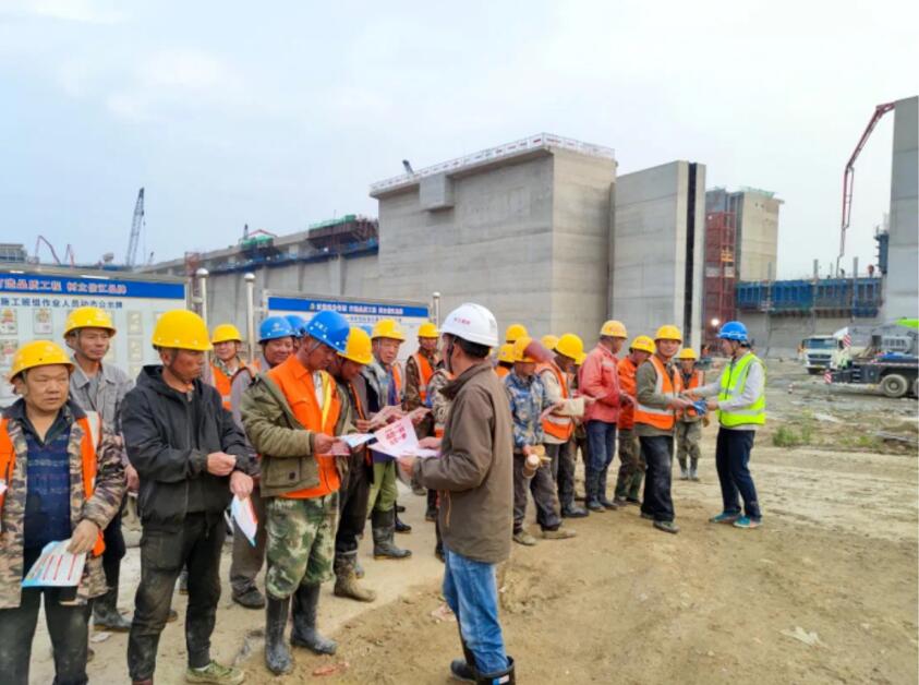 四月是八字嘴航电枢纽工程西大河二枯期的施工高峰期,从西大河观景平台俯视整个施工现场,一派如火如荼的建设景象,近700余名工人战斗在一线施工现场。而随之带来的现场安全风险也难以避免,特别是高处作业安全管控压力不断增大,为全力保障施工安全,公司八字嘴航电枢纽工程总监办充分发挥管理职能,调动各施工方网格员的先锋模范带头作用,组织开展了为期一个多月的高处作业安全行动月系列活动,为确保如期实现信江八字嘴西大河二枯期挡水目标保驾护航。