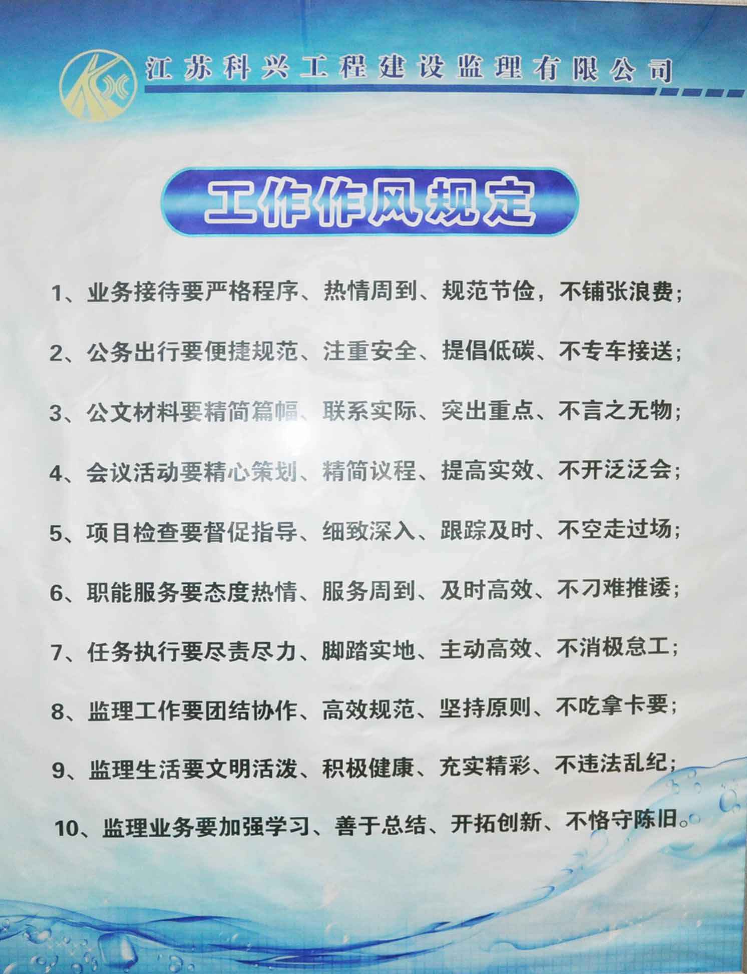| 江苏乐动(中国)监理公司制定《十项工作作风规定》 | |