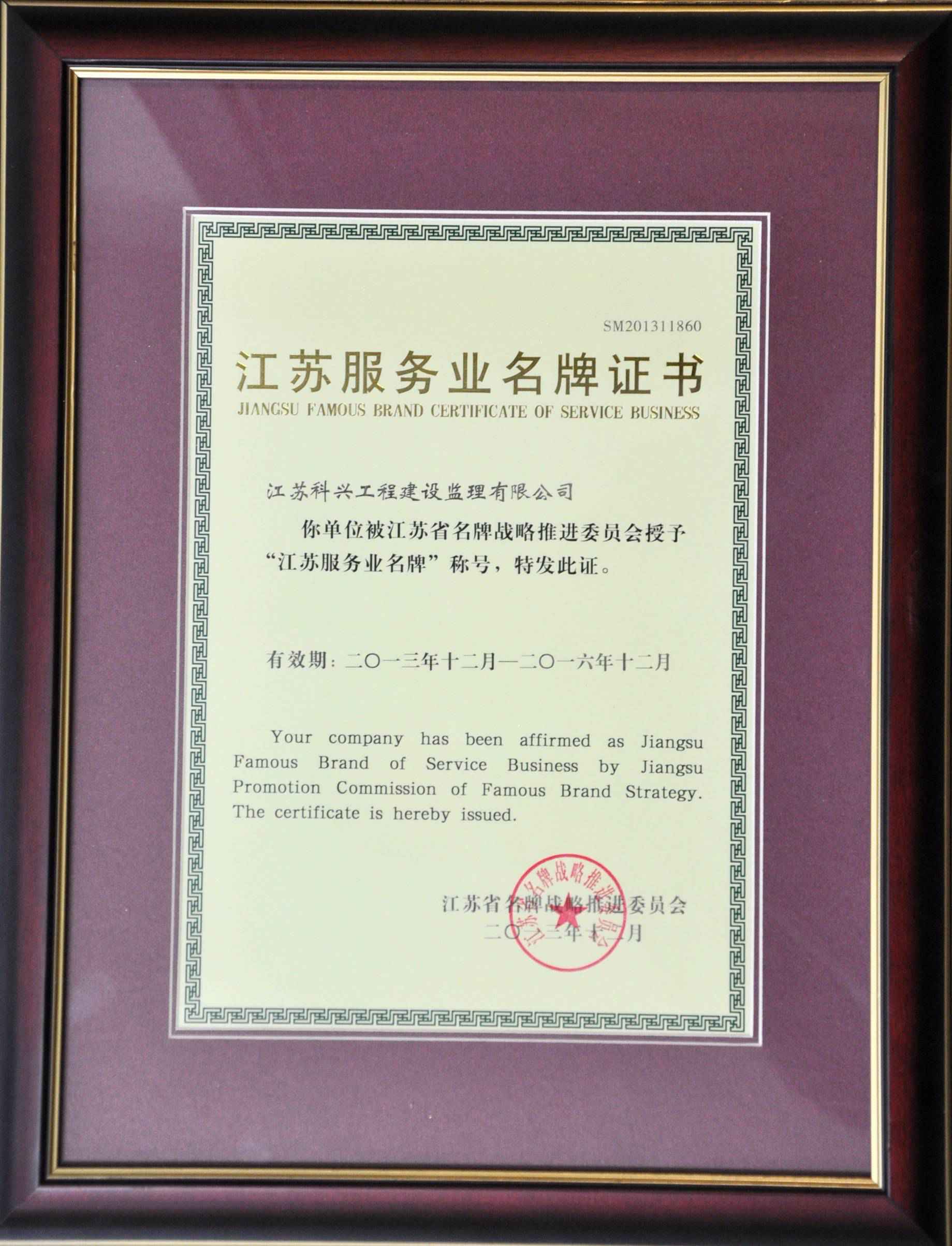 | 江苏乐动(中国)监理有限公司荣获“江苏服务业名牌企业”称号 | |