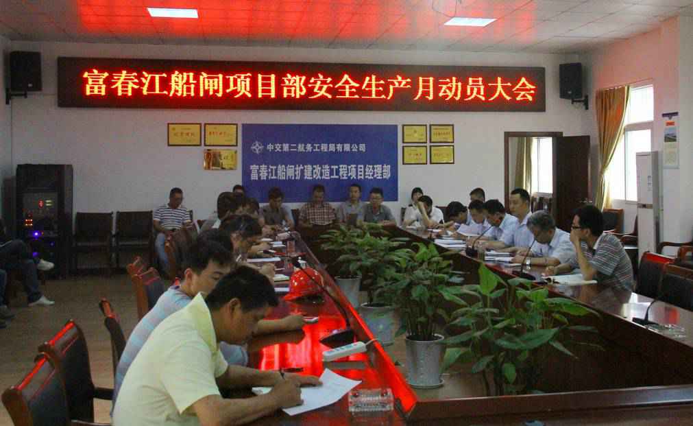 2014529日下午富春江船闸扩建改造工程建设指挥部和总监办组织项目部召开了“安全生产月”活动动员大会。