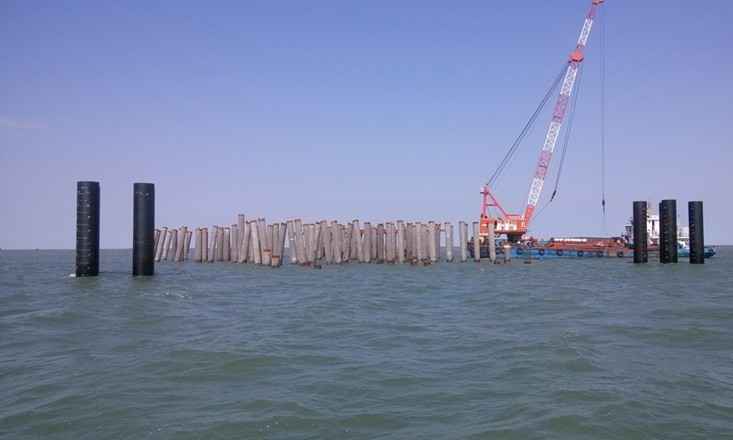 海门蛎岈山海上多功能平台工程完成管桩沉桩施工