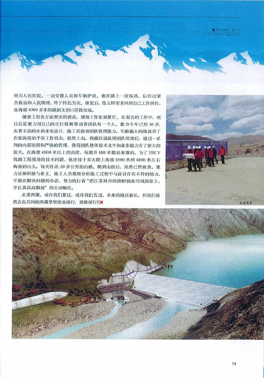 西藏是一个充满神秘而又神圣的地方,令人向往。西藏又是我们心头的一种牵挂,挥之不去。去年年底,我还在计划自己的西藏之行,今年年初就意外得到乐动在线注册的通知,将与项目总监一起率队前往西藏,前往日喀则。这不得不说是一份惊喜。带着对西藏朝圣的心,2015年4月,我们带着团队飞向雪域高原,走进了西藏。 当飞机降落拉萨,尽收眼底的是一碧如洗的天、轻盈洁白的云。团队中的小伙子抿着发紫的嘴唇,却依然掩饰不了满脸的喜悦。在拉萨短暂的休整期间,我慕名参观了大昭寺,被前来朝圣的各路游客和藏民所震撼,匍匐着磕头的人让我深深地感受到信仰的力量。就在那刹那间,我的脑海中忽然冒出个念头:“西藏拉洛水利枢纽工程有58个月的工期,近5年啊,团队靠什么来支撑住五年的时间?”我没有敢说出来,因为这是以年轻人为主的团队,还远离了城市的喧嚣,远离了家人和朋友…… 在前往日喀则进入工地时,看到大家依然欢呼雀跃,我心里就没有那么担心了。可在随后的工作进展中,大家还顾不上去欣赏雪域高原绮丽的风光,紧张而忙碌的工作就铺天盖地般地涌来。由于西藏拉洛水利枢纽是西藏迄今为止投资最大的水利工程,也是水利部172个重点项目之一,受到各级政府部门和社会各界关注程度极高,根据有关部门要求,拉洛工程今年务必要完成15亿元的投资任务,故工程显得更外忙碌。 就在大家刚进场不久的一个下午,刚刚21岁、团队中最年轻的小伙子刘佳文下班回来就报告说心口疼痛,刚开始大家都没有重视,只叫他服用了止痛片一类的备用药物。由于高原反应,到了晚饭时,他连饭碗都端不住了,豆大的汗水从额头渗出,坐也坐不稳,话也说不出。事出紧急,监理部立即启动应急预案,一边联系远在80多公里外的日喀则市人民医院,一边安排人员和车辆护送。他在路上一度昏迷,后经过紧急救治和入院调理,终于转危为安。康复后,他立即要求回到自己工作岗位,在海拔4300多米的隧洞支洞口巡视旁站。 随着工程各方面要求的提高,现场工作愈加繁忙。在艰苦的工作中,项目总监董力用自己的言行鼓舞带动着团队每一个人。董力今年已经56岁,有着丰富的水利水电设计、施工经验和团队管理能力,年龄偏大的他放弃了在低海拔的平原工作机会,毅然上山。西藏拉洛监理团队组建后,通过一系列的内部培训和严格的管理,使得团队整体技术水平和业务能力有了很大的提升。在海拔4000米以上的高度,每爬升100米都是艰难的。为了35KV线路工程现场的技术问题,他连续十多天爬上海拔4500米到4800米左右海拔的山头,每天往返20多公里的山路。爬到山顶后,虽然已然疲惫,董力还积极与业主、施工人员现场分析施工过程中与设计存在不符的地方,并提出解决问题的办法,努力践行着“把江苏乐动(中国)的旗帜插在雪域高原上,并让其高高飘扬”的公司嘱托。 走进西藏,或许我们累过,或许我们苦过,未来的路还很长,但我们依然会在共同的西藏梦里快乐前行,勇敢前行! |