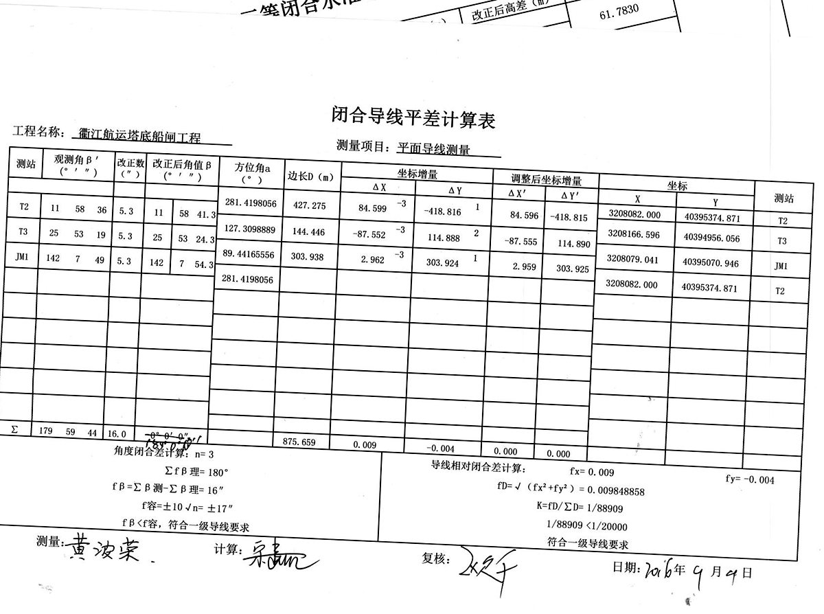 2016年9月8日至9日,浙江片区督导组在塔底船闸组织测量技能培训学习,并对塔底船闸高程控制网进行半年再复测,参加人员来自片区各项目测量人员及培养库人员等。 此次测量技能培训分为现场操作和内业计算两部分,外业主要从一级平面导线控制测量,三等水准导线测量、水准仪i角校核等进行现场操作,分析测值的影响因素以了解各种外界条件及内部因素,结合各站的观测项目和使用的观测仪器,详细讲解和分析了野外观测项目的测量误差主要来源和消除常见误差提高观测精度的方法;内业是分工、分类将测量数据进行整理、计算出相应成果,对每个人的计算成果进行核对,查找计算中的问题,及时进行指正、改进,并形成合格最终成果。 通过此次测量技能培训,各项目测量人员在外业观测、测量过程、数据处理、成果质量、熟练程度各方面进行岗位练兵,学以致用,进一步提高了测量人员基础测量实际操作能力和内业计算水平。(浙江片区) |