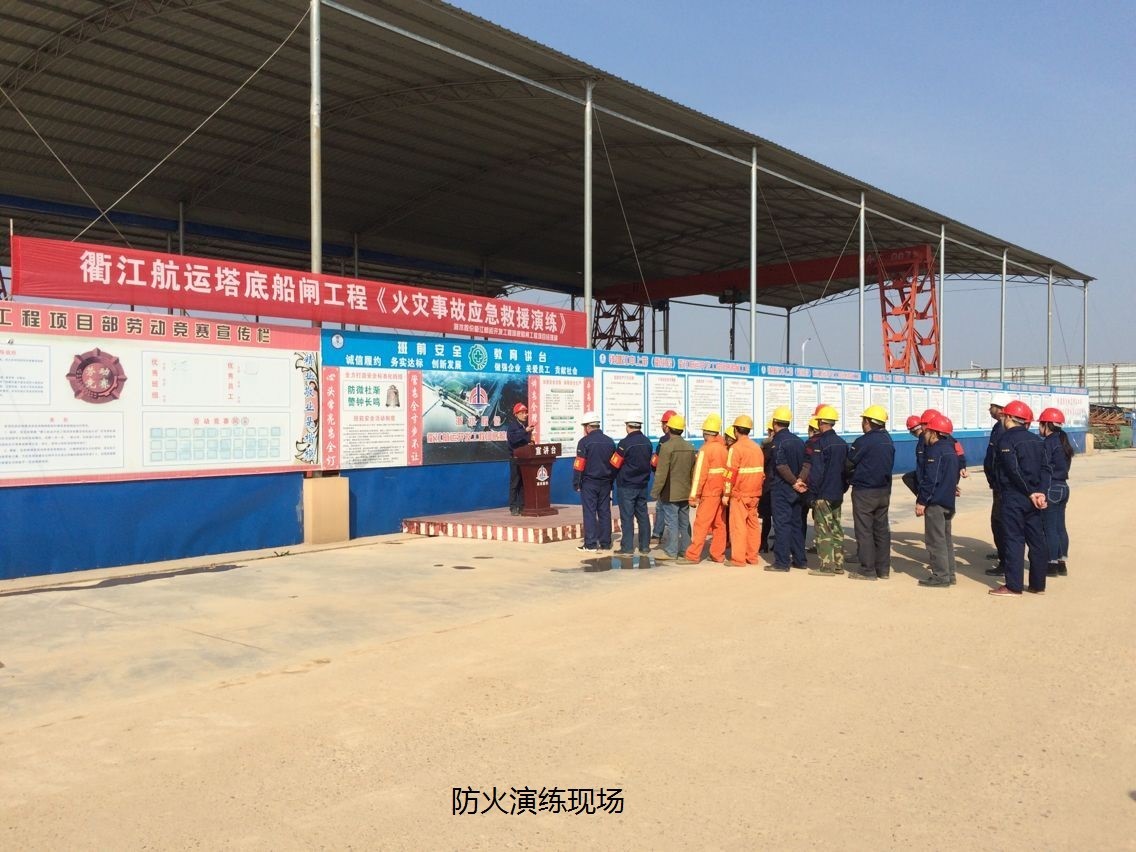 2017221日塔底船闸工程监理办组织项目部开展了“火灾事故应急演练”活动。衢州市港航管理局邹德武副局长进行了现场观摩和指导。