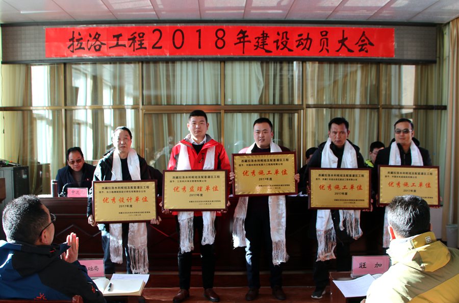 2018年3月08日,西藏日喀则拉洛项目召开了2018年的工程动员大会。 新的一年新的气象,西藏自治区水利厅副厅长热旦,西藏自治区拉洛管理局杨军局长发言总结了2017年的工作,布置了2018年的目标“抢进度,保质量”。 会上杨局长对监理部在2017年的工作给予了肯定,特别是在冬季停工期间还加班加点坚持工作给予了表扬,并授予公司为“2017年优秀监理单位”称号,监理部徐总监与杨军局长签订了安全责任书并表态发言:一定坚持为业主服务,发扬乐动(中国)精神,管理好工程项目,坚决完成2018年的工作目标。(拉洛监理部) |